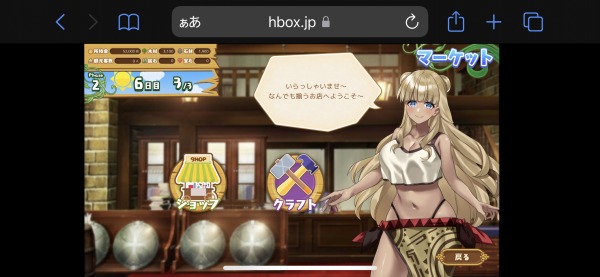 トップ画面のアイテムではショップとクラフトを選択することができます