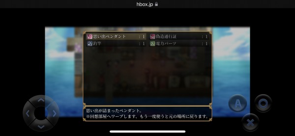 ゲームスタート時から持っている『思い出のペンダント』で回想部屋へいけます