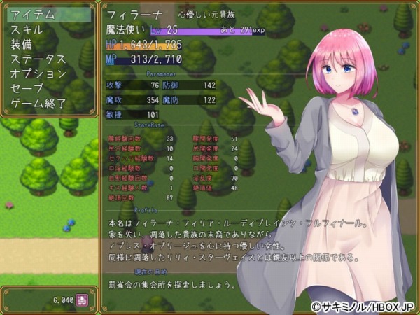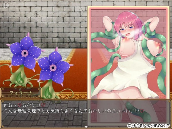 貴族の末裔で巨乳の持ち主、ヒロインのフィラーナは幼馴染のリリィを助けるために薬を探す旅に出る。町中や戦闘中、そして敵に負けるとHイベント発生!