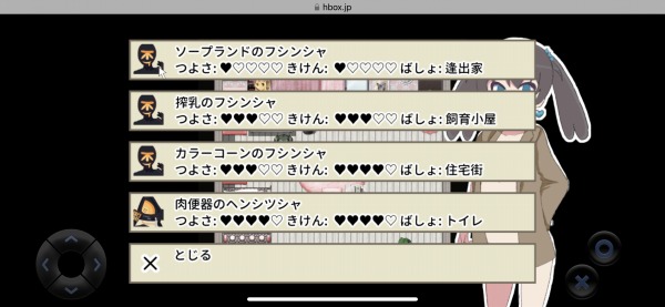 パスコードを入力するところまで戻り、パスコードを入力して進むとボス『肉便器のヘンシツシャ』と対戦。